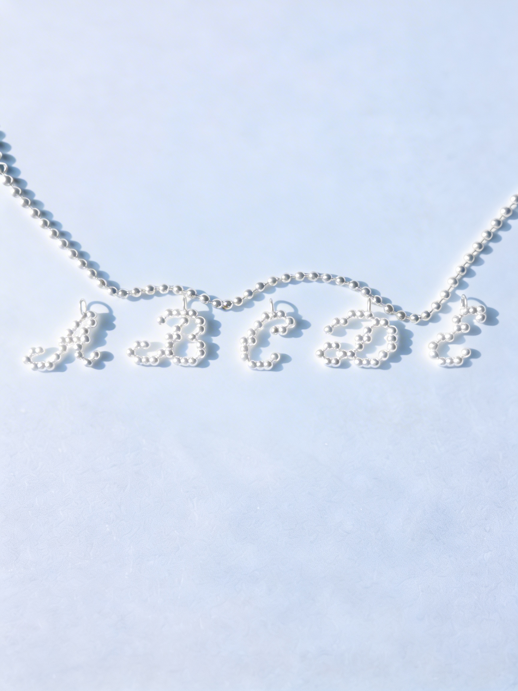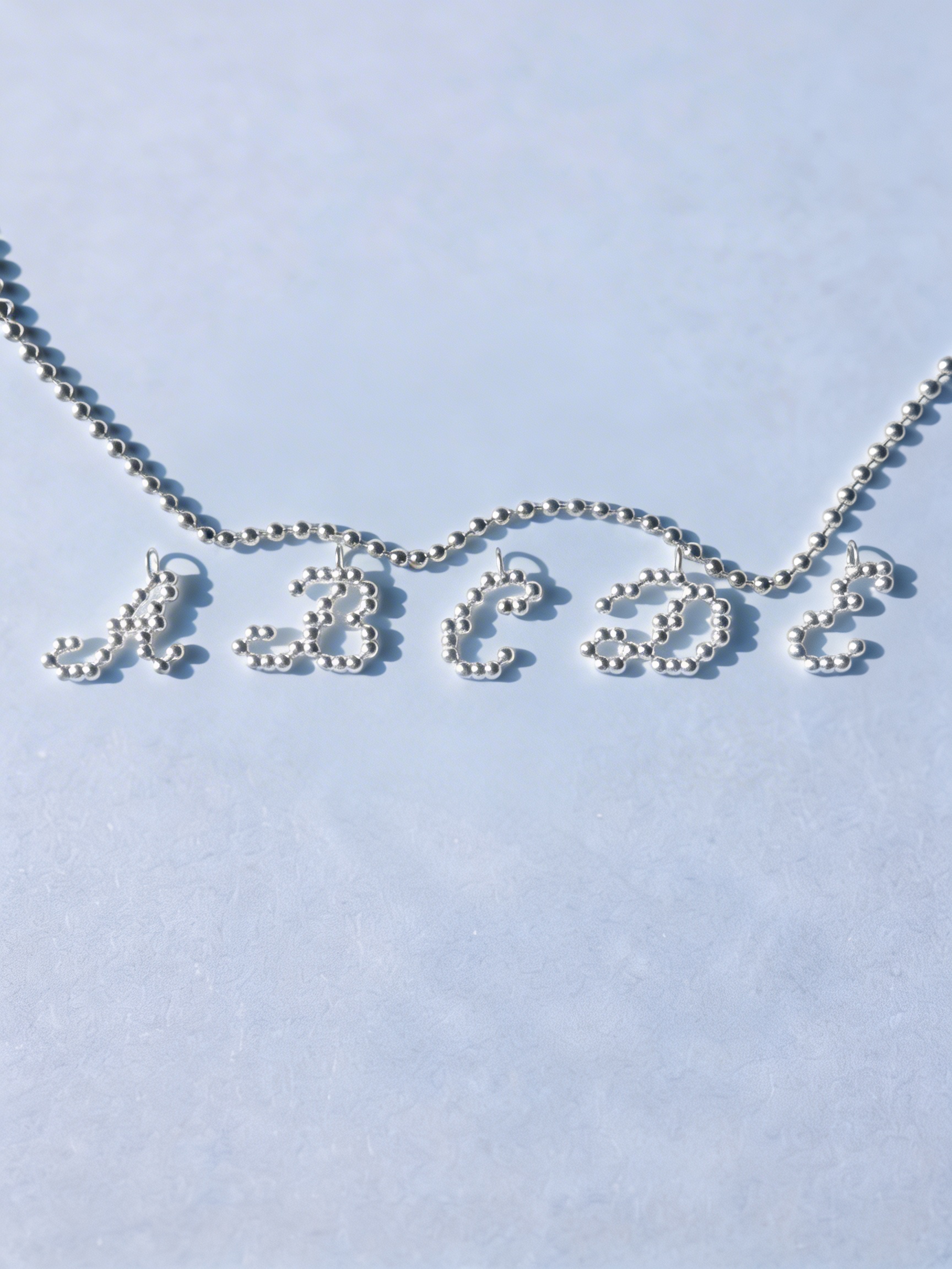 Cursive letter pendant on a ball chain. Any initial, A–Z. Please allow 2–3 weeks.